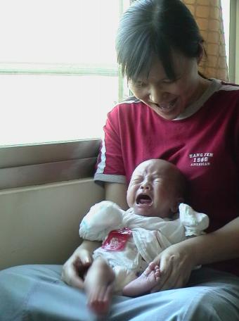 於是我有些火氣,欲抱起他到我腿上,與他眼對眼說話;