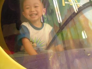 2) 給孩子時間的概念,樹兒現在已經會看時鐘(數字和指針型的),他一歲半吧! 就有了數字概念﹍﹍,在沒有數字概念時,我會爬到家裡的指針鐘告訴他,當短針指到這裡的時候我來接他。 或更早的時候,即使他還是個不會聽話的4個月小BABY,我說「太陽公公下山,天空變黑,裡面要開燈的時候,媽媽就來接你。」 而我也真的守時,即使他聽不懂,我也相信他收到了我的忠誠。