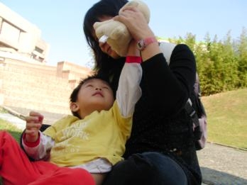 他忽然說,「媽媽,我們在聊天耶~ 我們過著幸福快樂的生活。」