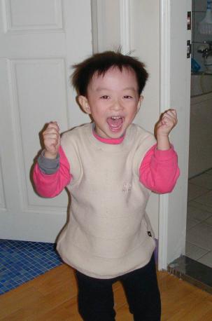 (當他學一個新詞時,都會哈哈大笑)